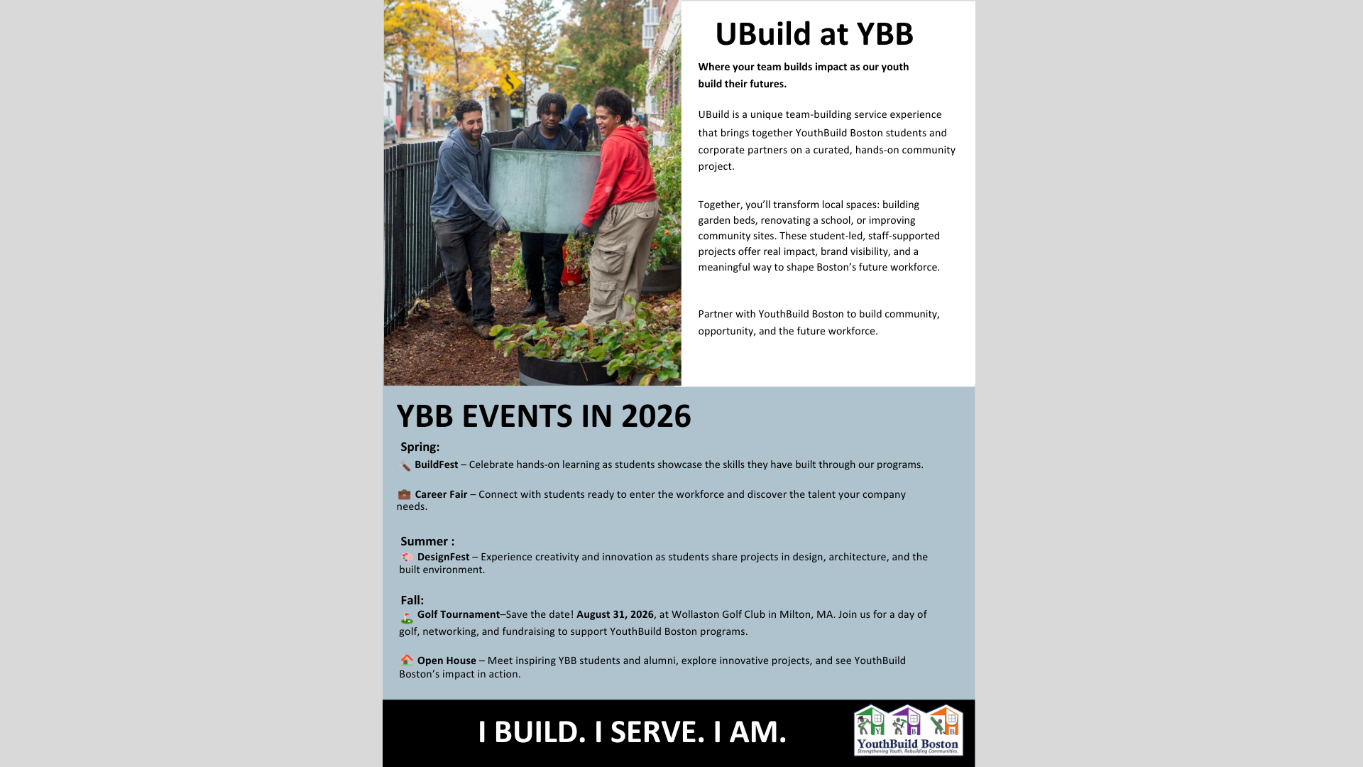 Contributing to YouthBuild Boston makes a meaningful impact. YouthBuild provides education, job training, and mentorship, equipping young people with essential skills for success and enhancing the city's economy. Your support is an investment in the future of both young people and the city of Boston. Consider donating today!