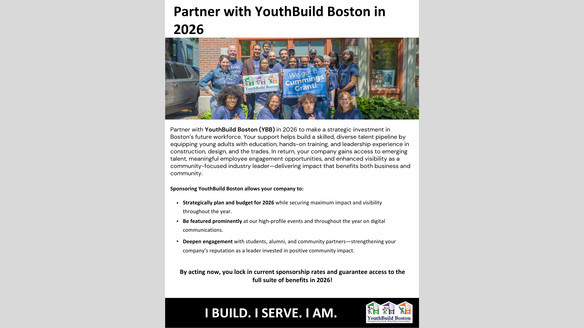 Sponsoring YouthBuild Boston allows your company to:​