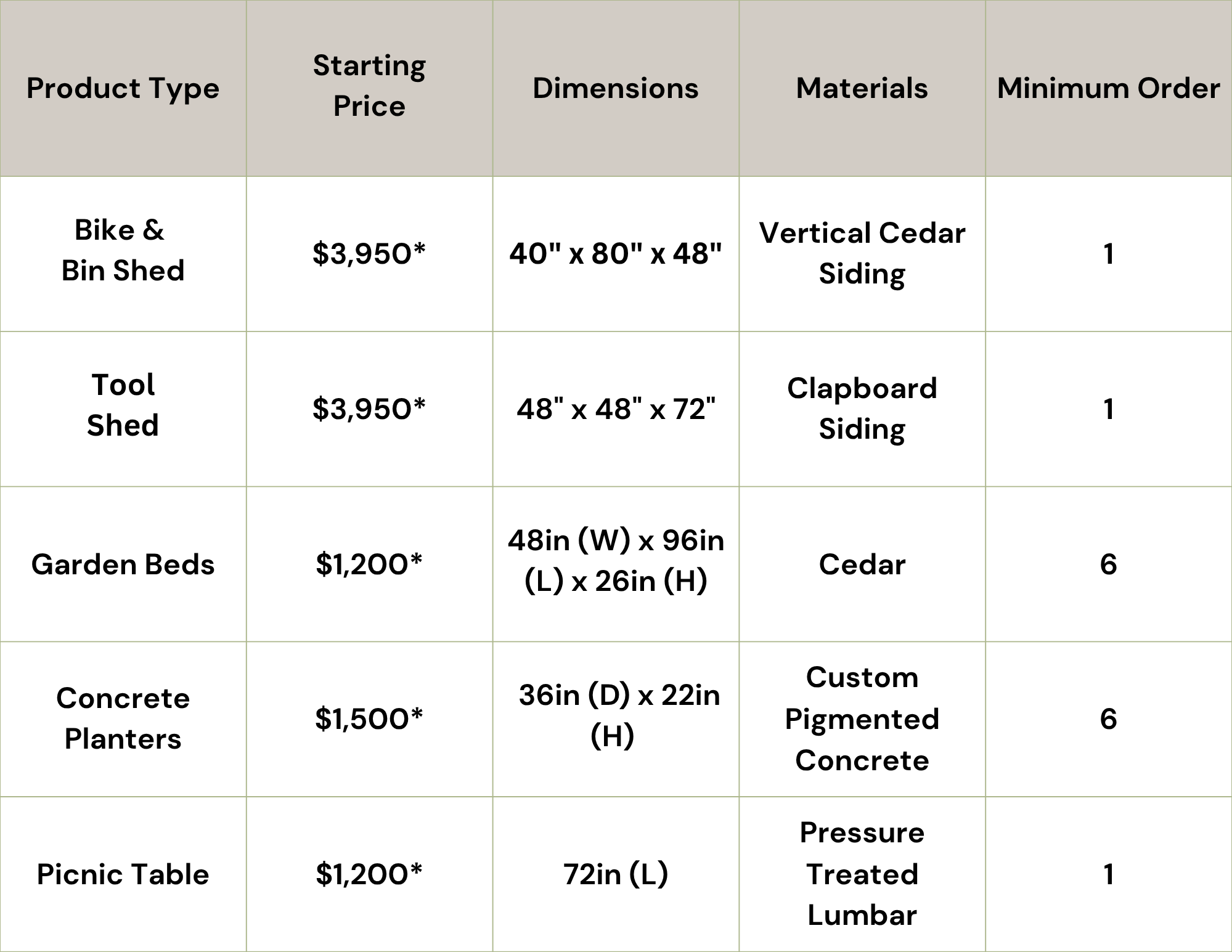 *Please note: Cost related to site preparation or special site conditions are not included in the standard price. Deliveries to locations outside of Boston will incur an additional fee.